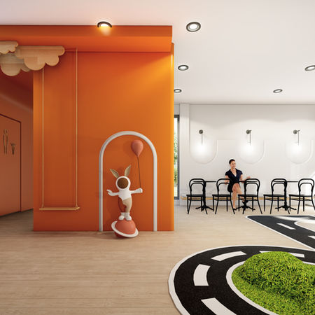Welcome to our Preschool Development Center, designed to recognize and nurture the interests of young children through a combination of mental and physical activities supported by playful interactions. This thoughtfully crafted space includes a children's playground, a café-style waiting area for parents, accounting and meeting offices, a music room, a sports room, and educational classrooms.