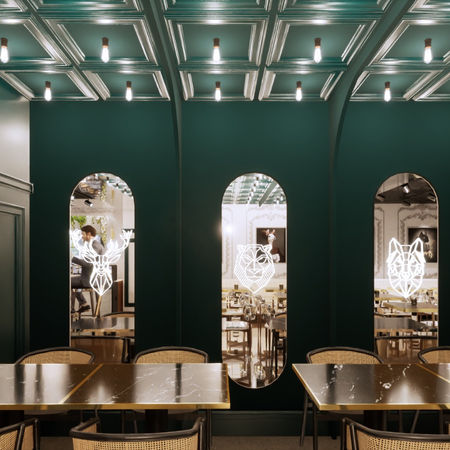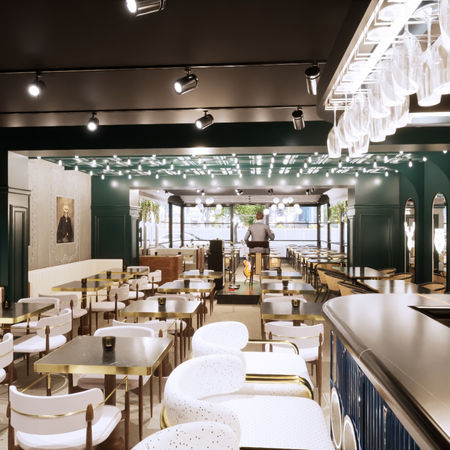 Modern Cafe Atmosphere with Green Accents
