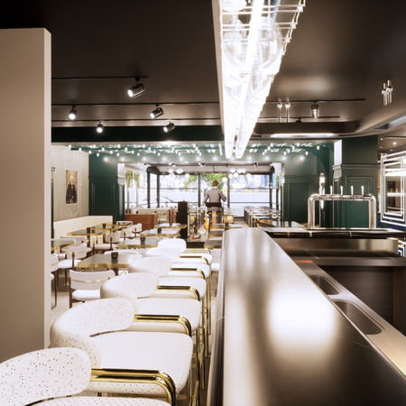 Our recently redesigned space features a modern cafe atmosphere enhanced with green accents. The stylish decor creates a welcoming environment where you can relax and enjoy drinks and delicious meals. Every detail has been carefully curated to ensure a comfortable and enjoyable experience for our guests.